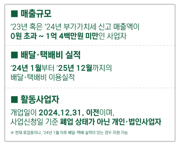 - 주의: 현재 휴업중이나, '24년 1월 이후 배달/택배 실적이 있는 경우 지원 가능!!