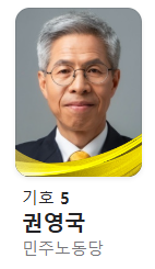 | 5 | 권영국 | 민주노동당 | |
