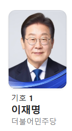 | 1 | 이재명 | 더불어민주당 | |