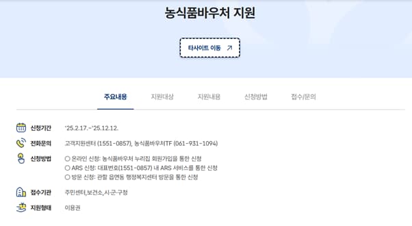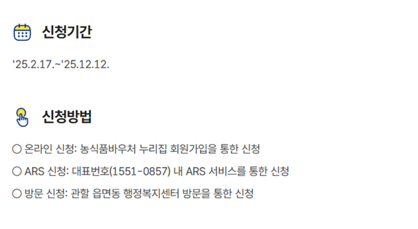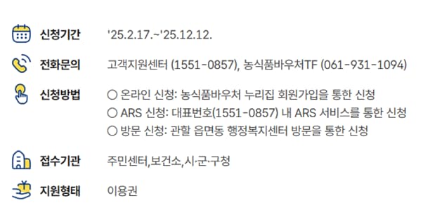 - 온라인 신청: 농식품 바우처 홈페이지에서 신청