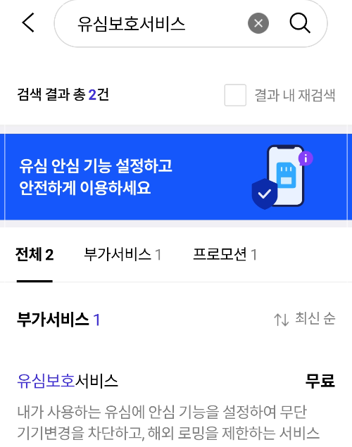 2️⃣ 검색창에 ‘유심보호서비스’ 입력
